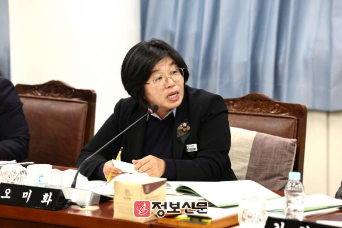 ![]() 전라남도의회 제386회 제2차 정례회 예산결산특별위원회 제2회 추가경정예산안 1차 심사(27일)에서 오미화 의원이 집행부를 향해 질의하고 있다.