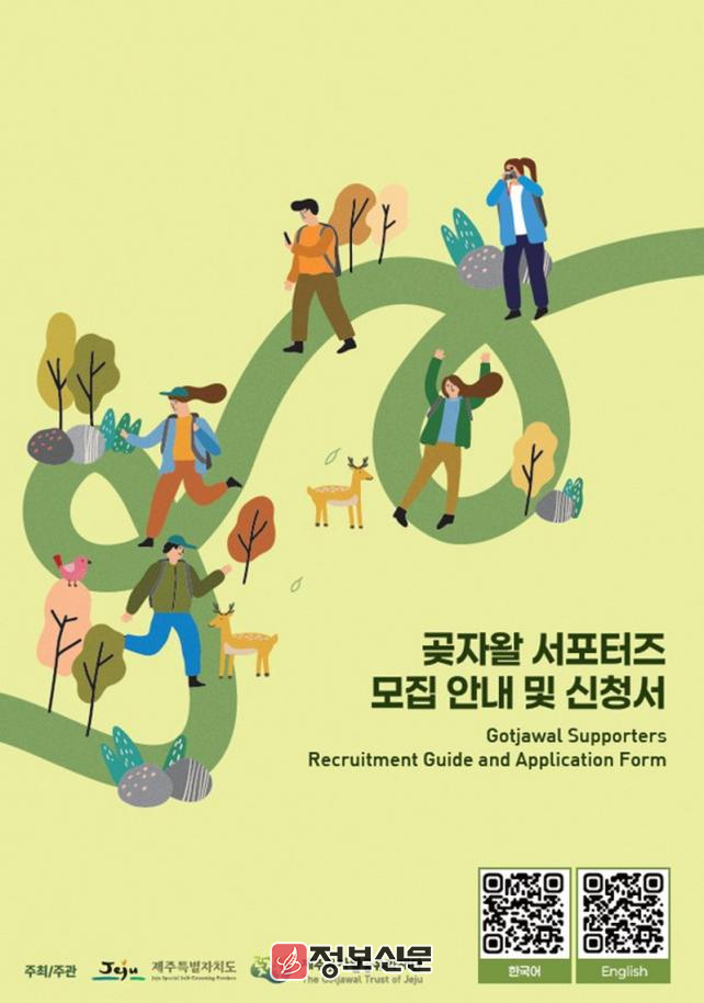 서포터즈 신청은 산양큰엉곶, 동백동산, 환상숲곶자왈공원, 비자림 등 주요 곶자왈 지역 매표소와 입구에서 가능하다. 국문과 영문으로 제작된 신청서를 작성해 제출하거나 큐알(QR) 코드를 통해 온라인으로도 참여할 수 있다.