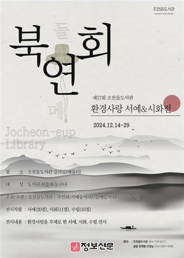 ![]() 조천읍도서관, 제17회 환경사랑 서예&시화전 개최 |