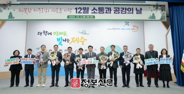 제주도는 ‘12월 소통과 공감의 날’ 행사에서 걷기 기부 캠페인 참여 기관과 기업에게 감사패를 전달했다.