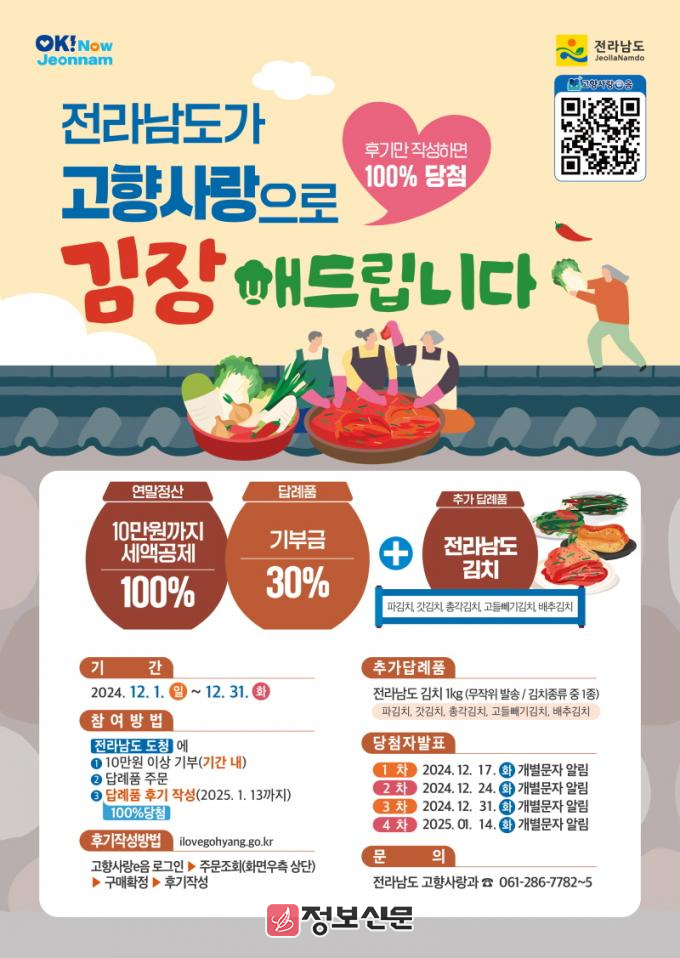 ![]() 전라남도, ’고향사랑으로 김장 해드립니다’ 이벤트 진행 |