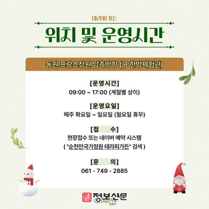 ![]() 순천시, 향기로운 겨울 휴식 순천만국가정원 테라피가든에서 만나요. |