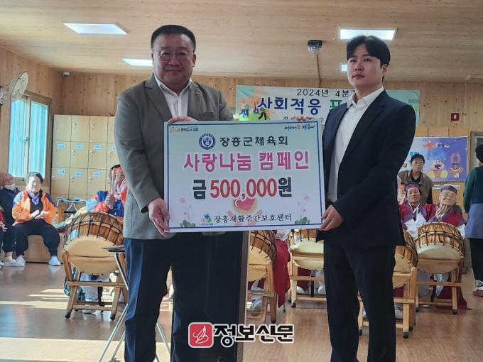 이번 행사에서는 장흥군 체육회는 생활이 어려운 어르신들을 위해 사랑 나눔 캠페인으로 후원금을 전달했다.