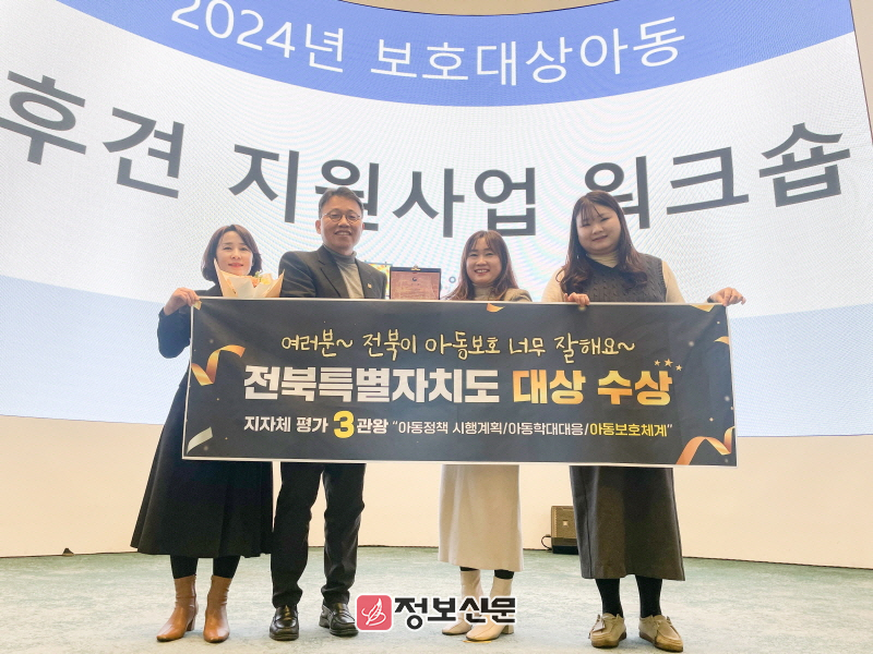 ![]() 전북특별자치도, 2024년 아동보호체계 구축 평가 대상(전국 1위)수상 |