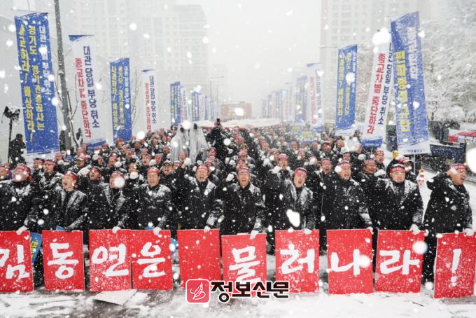 ![]() [사진 제공 = 신천지예수교회]지난달 27일 경기도 수원시 경기도청 앞 편파적인 종교탄압 규탄 결의대회에서 신천지예수교회 성도들이 구호를 외치고 있다. |