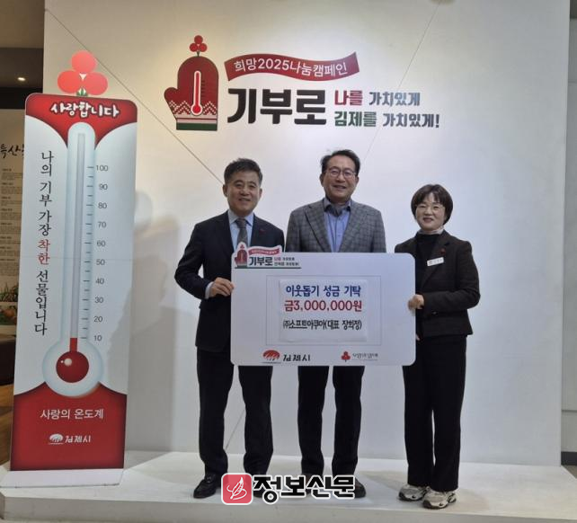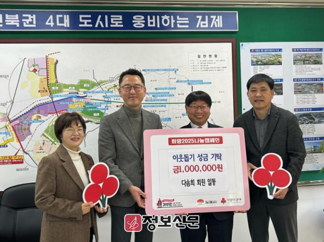 정성주 김제시장은“희망 2025 나눔 캠페인의 시작을 알린 다솜회와 ㈜소프트아쿠아에 깊이 감사드린다.”라며, “이들의 기부가 지역 내 나눔 문화 확산에 큰 역할을 하고 있다.”라고 전했다.