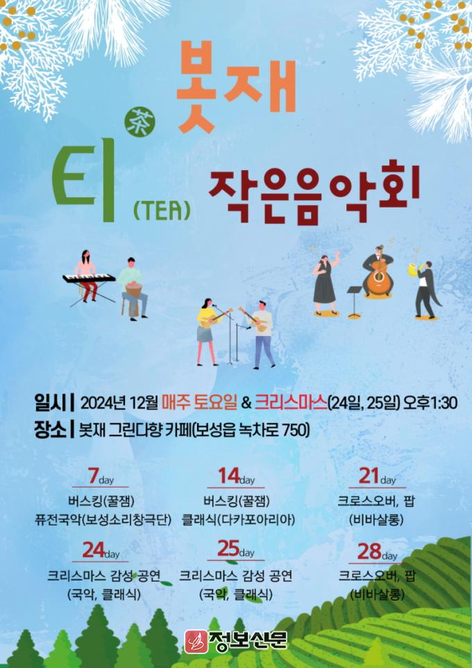 ![]() 보성군, 음악과 함께하는 연말 ‘봇재 티(TEA) 작은 음악회’ 개최 |