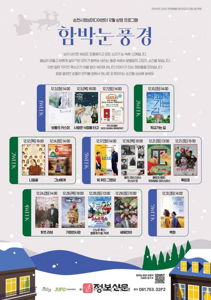 ![]() 순천시영상미디어센터, 따뜻한 연말 무료상영회 개최 |