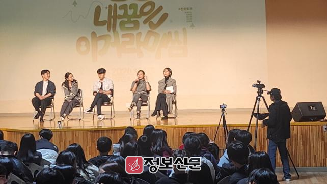진로직업에 대한 묻고 대답하기에서 학생들은‘언제 아나운서가 되기로 마음 먹었는지?’‘배우님들은 자신들이 하고 싶은 것을 추구하면서 분명 좌절하고 두려움이 많을 것인데 어떻게 이겨냈는지?’‘학창 시절에 공부방법은 어땠는지?’등 다양한 질문을 하였고 조언자들도 성실하게 학생들에게 대답해 주었다.