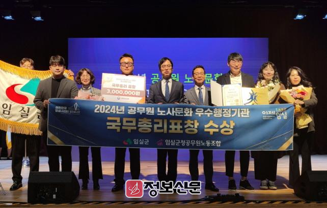 임실군은 2024년 공무원 노사문화 우수행정기관으로 선정되어 국무총리 표창을 받았다고 5일 밝혔다.