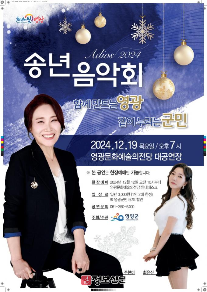 ![]() 영광문화예술의전당, 2024 송년음악회 주현미 콘서트 개최 |
