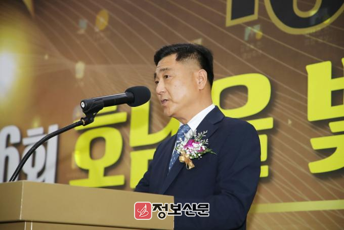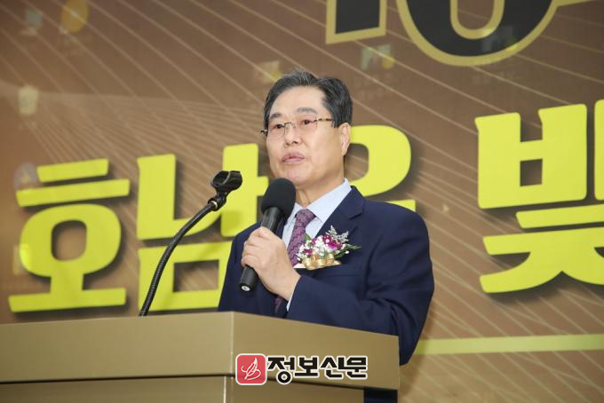 ![]() ▲(사)대한기자협회 광주·전남협회가 주최한 2024년 ‘제6회 호남을 빛낸 인물대상’ 시상식에서 정승현 협회장이 대회사를 하고 있다. |