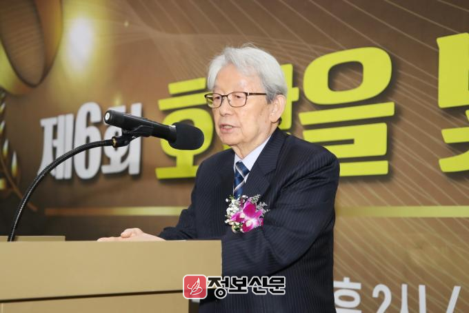 ![]() ▲(사)대한기자협회 광주전남협회가 주최한 2024년 ‘제6회 호남을 빛낸 인물대상’ 시상식에서 최영관 선정위원장이 선정 결과 인사말을 하고 있다. |