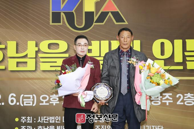 ![]() ▲ 지난 12월 6일 광주 홀리데이 인 광주호텔 2층 연회장에서 열린 ‘2024년 제6회 호남을 빛낸 인물 대상’에서 (사진_우측) 박종관 사단법인 전남지체장애인협회 함평군지회 회장이 공로부문 ‘장애인복지공로’대상을 수상하고 기념촬영을 하고 있다. |
