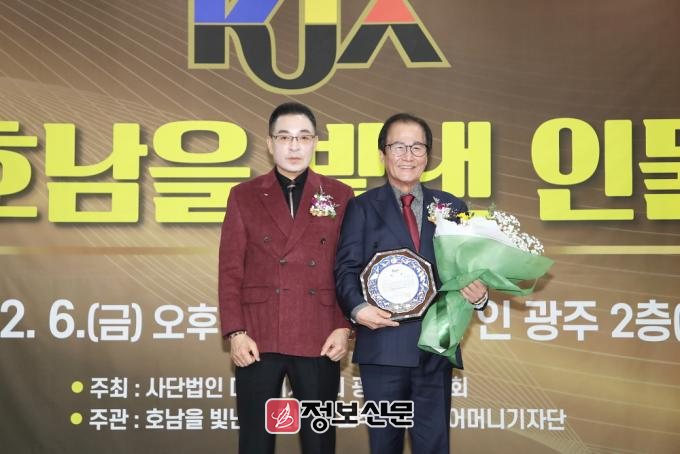 ![]() ▲ 지난 12월 6일 광주 홀리데이 인 광주호텔 2층 연회장에서 열린 ‘2024년 제6회 호남을 빛낸 인물 대상’에서 (사진_우측) 김병학 작곡가가 문화예술부문 ‘가요발전공로’대상을 수상하고 기념촬영을 하고 있다. |