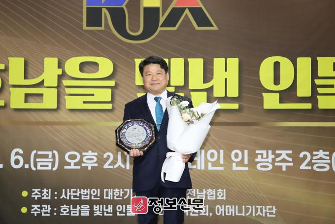 ![]() ▲ 지난 12월 6일 광주 홀리데이 인 광주호텔 2층 연회장에서 열린 ‘2024년 제6회 호남을 빛낸 인물 대상’에서 (사진_우측) 최부홍 목포해양대학교 교수가 교육부문 ‘교육’대상을 수상하고 기념촬영을 하고 있다. |