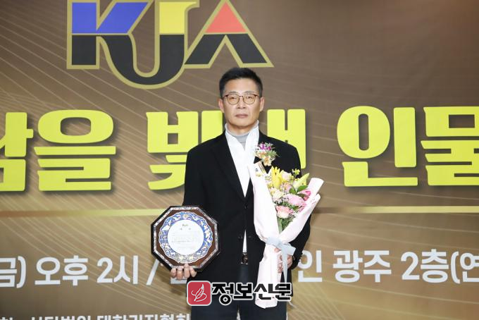 ![]() ▲ 지난 12월 6일 광주 서구 홀리데이 인 광주호텔 2층 연회장에서 열린 ‘2024년 제6회 호남을 빛낸 인물 대상’에서 정치부문 기초의원 ‘지역발전공로’대상을 수상한 문차복 목포시의회 의원을 대신해 장기영 국장 |