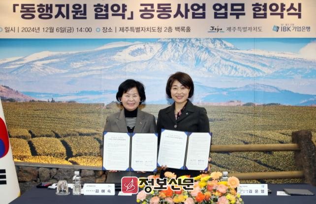 제주도와 IBK기업은행은 6일 오후 2시 제주도청 백록홀에서 ‘동행지원 협약’ 공동사업 업무협약을 체결했다.
