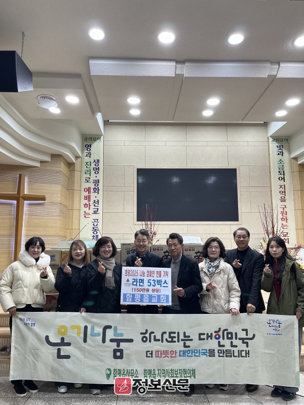 함평읍교회는 함평읍 관내 대표적인 종교시설로, 매년 희망 나눔 캠페인에 참여해 어려운 이웃들을 위한 성금 및 물품 기부를 꾸준히 이어오며 지역사회 나눔 문화 확산에 기여하고 있다.