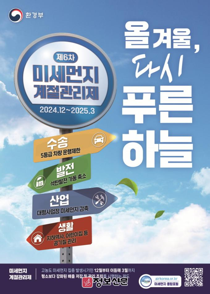미세먼지 계절관리제는 매년 계절적 요인으로 미세먼지 발생 빈도와 농도가 높은 시기인 12월부터 이듬해 3월 31일까지 평상시보다 강화된 미세먼지 배출저감 대책을 시행하는 제도다.