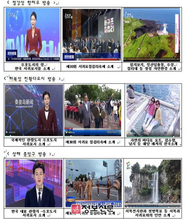 절강성 항저우 방송국은 ‘교류도시 창(窓) - 한국 서귀포시를 가다’편을 제작하여 두 개의 프로그램과 공식 윗쳇SNS에 방영하였고, 하북성 친황다오시 방송국은 ‘친황다오시 소식’ 에 ‘우호도시- 한국 서귀포시’ 를 3회 방영하였으며, 상하이 충밍구 방송국은 ‘충밍구 뉴스’ 프로그램과 정부 공식 체널에 대대적으로 서귀포시를 홍보하였다.