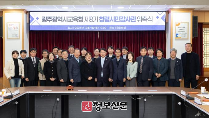 ‘청렴시민감사관’은 시민 눈높이에 맞는 광주교육 발전을 위해 지난 2010년부터 운용하고 있는 제도로, 주요 사업이나 부패 취약 분야 등 외부 부패 통제 장치로서 기능을 하고 있다. 시교육청은 청렴한 교육행정 실현을 위해 8기 청렴시민감사관을 기존 16명에서 4명 늘린 20명으로 확대했다.