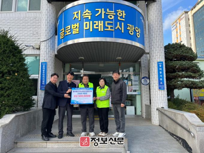 ![]() 강정훈 중마동 지역사회보장협의체 민간위원장, 중마동에 후원금 50만 원 쾌척 |