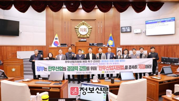 ![]() 나주시의회, ‘한우산업지원법 제정 촉구 건의안’ 채택 |