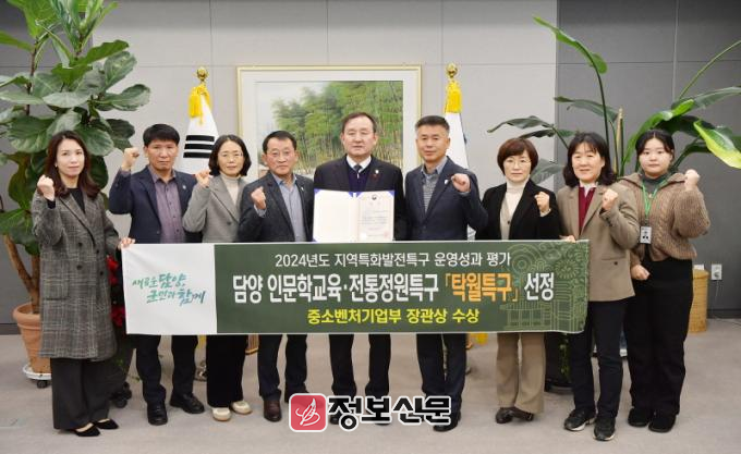 담양군(군수 이병노)에 따르면 최근 중소벤처기업부(이하 중기부)가 주최해 전국 181개 특구 대상으로 실시한 2024년도(‘23년 실적) 지역특구 운영성과 평가에서 담양 인문학교육·전통정원 특구가 탁월특구에 선정되었다고 밝혔다.