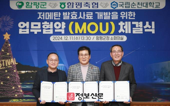 이번 업무협약은 저 메탄 발효사료의 연구개발을 위해 함평축산농협, 국립순천대학교 상호 간 협력체계 구축 및 공동 발전을 위한 것이다.
