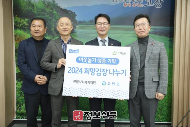 이번 기탁식에서 매일유업 진암사회복지재단은 김치10㎏ 250박스(2000만원상당)의 성품을, NH농협 고창군지부에서 1000만원의 성품을 기탁했다.