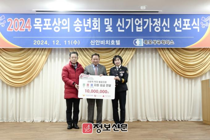 목포상의는 이날 신기업가정신 실천의 일환으로 ㈜대창식품(대표 정현택)이 전남경찰청 ‘봄봄봄 지원단’에 기금 1천만원을 전달했다고 밝혔다.