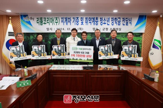 리튬코리아(회장 손정만)는 이번 협약식에서 보성군 관내 지역농협 5개소에 전기 지게차 5대를 기증하고 취약계층 청소년 10명에게 5백만 원의 장학금도 함께 전달해 지역사회의 본보기가 되고 있다.