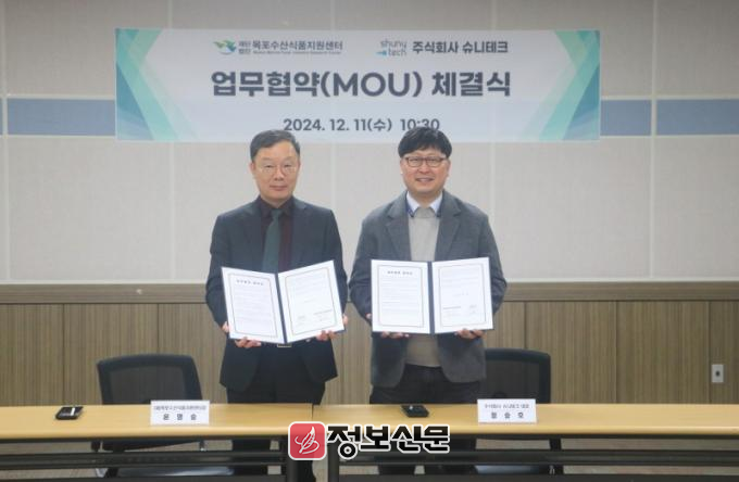 ![]() (재)목포수산식품지원센터, ㈜슈니테크와 지역 수산식품산업 발전협력 업무협약 체결 |