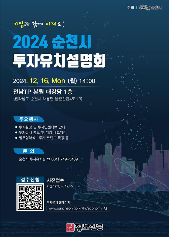 ![]() 순천시, 기업과 함께 미래로! 2024년 투자유치 설명회 개최 |