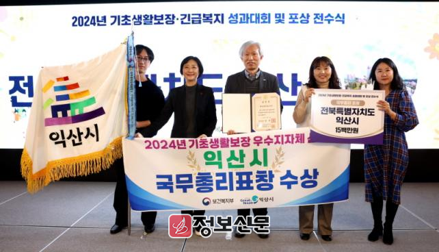 익산시는 보건복지부 주관 '2024년 기초생활보장분야' 평가에서 우수 지방자치단체(이하 지자체)로 선정돼 국무총리 표창을 받았다고 13일 밝혔다.