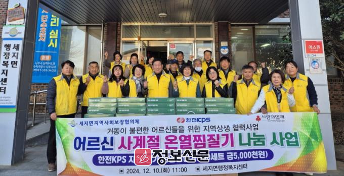 세지면 지역사회보장협의체(지사협)는 최근 병원 접근성이 떨어져 불편을 겪는 어르신들을 위해 한전KPS가 기부한 500만원 상당의 온열찜질기를 100가구에 전달했다고 밝혔다.