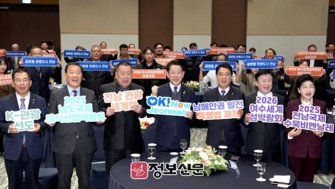 행사에선 전남 관광산업 발전에 기여한 유공자를 표창했다. 이어 퍼포먼스에선 본격적인 전남 관광의 세계화를 다짐하고, ‘2025 남도국제미식산업박람회’와 ‘2026 여수세계섬박람회’ 성공 개최 등 지역관광 활성화 결의를 다졌다.