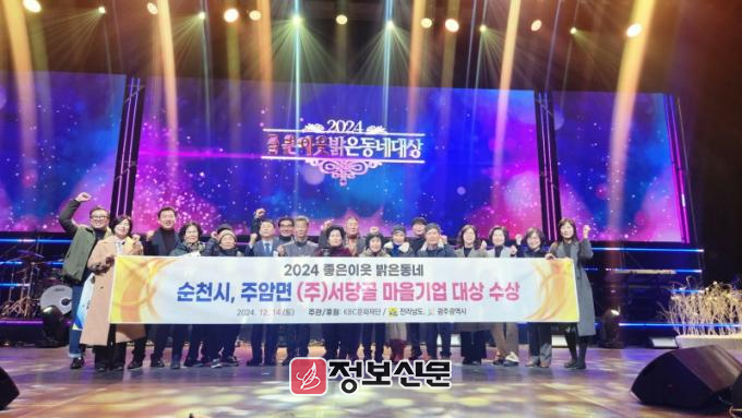 ![]() 순천시 서당골(주), 2024 좋은이웃 밝은동네 ‘대상’ 수상 |
