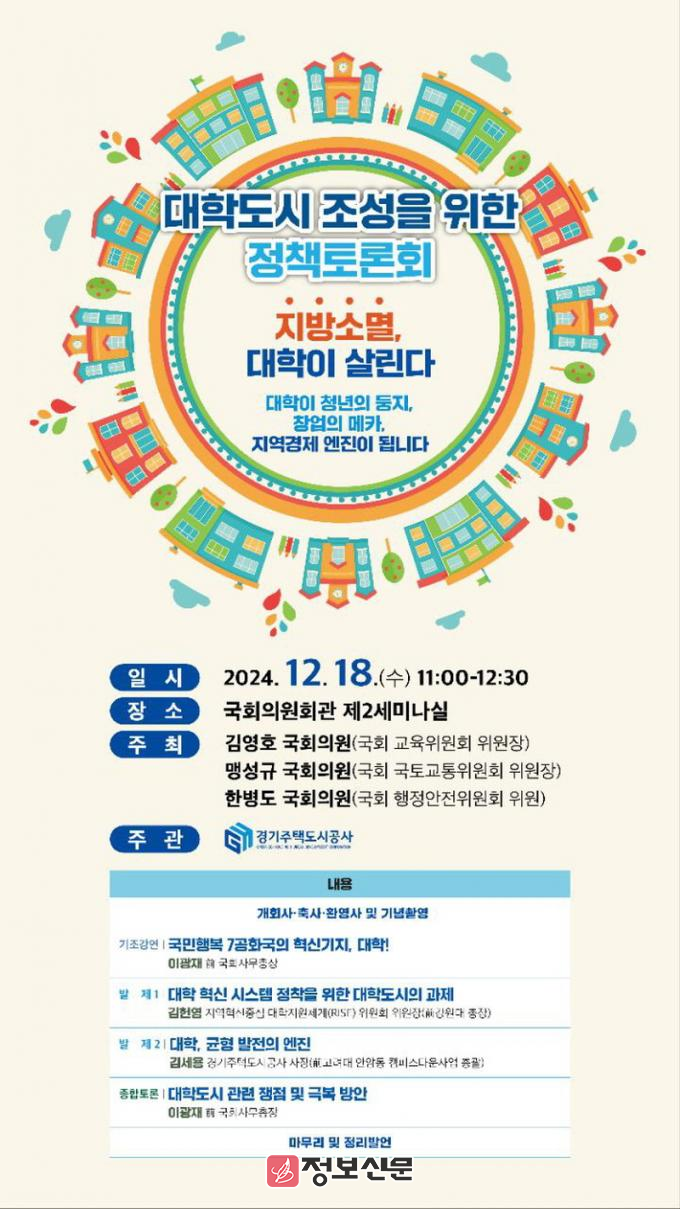 이번 토론회는 혁신도시와 기업도시를 잇는 대학도시의 개념을 제시하며, 지방 대학 위기 및 청년 실업, 주거 불안의 해결책으로서의 역할을 논의한다. 대학 내 기업 유치와 고품질 주거시설 확충에 대한 방안도 다룬다.