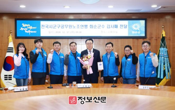 ![]() 구복규 화순군수, 전국시군구공무원노동조합연맹 감사패 받아 |