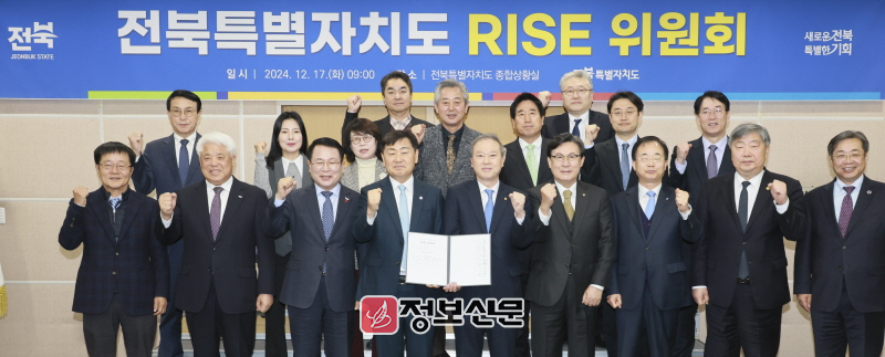 이날 첫 회의를 가진 전북 라이즈위원회는 전북자치도의 RISE 기본계획과 시행계획을 심의 의결하는 최고 의사결정기구다. 위원회는 도지사를 포함해 시·군, 도교육청, 대학, 혁신기관, 산업계 등 총 20명으로 구성됐다. 위원회 운영에 따라 호선된 공동위원장은 도지사와 함께 지역 대학 총장 중 1명이 선출됐다.