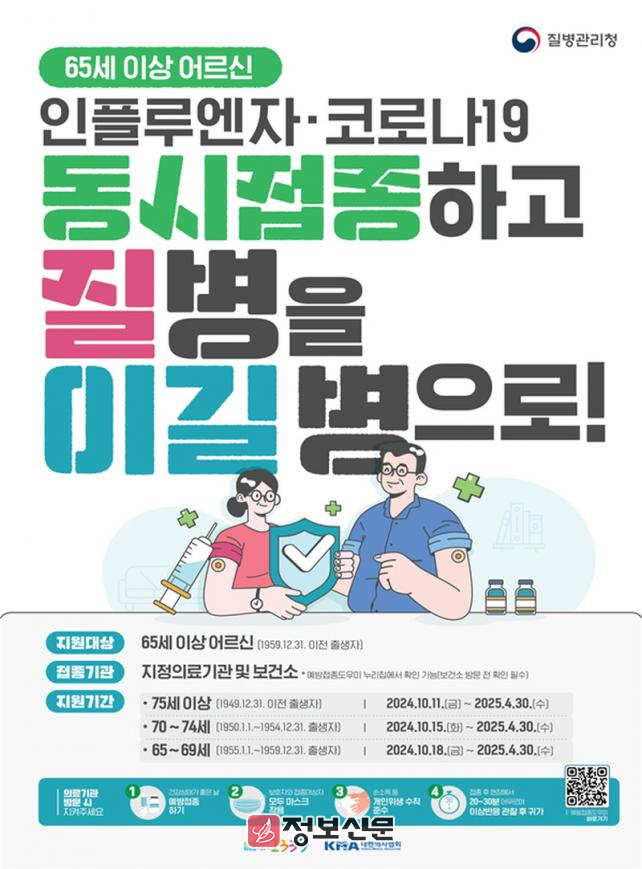 인플루엔자 예방접종은 어린이(생후 6개월~13세), 임신부, 65세 이상 어르신을 대상으로 무료접종을 지원하고 있으며, 65세 이상은 코로나19와 인플루엔자 동시접종이 권고되고 있다.