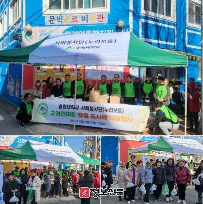 특히 학생 동아리는 정성껏 준비한 컵파운드케이크와 과일을 제공했으며, 학교 식당 ‘송담’에서는 따뜻한 사랑의 도시락을 준비했다. 이 음식들은 고려인마을 내 지역아동센터와 노인복지센터를 포함한 마을 구성원 300명에게 전달되며 추운 겨울 훈훈한 나눔을 실천했다.