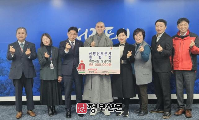 산방산 보문사 장학회에서 기탁된 성금 500만원은 제주사회복지공동모금회를 통해 서귀포시 사랑원, 공동생활가정 등 사회복지시설 12개소에 난방비로 지원될 예정이다.