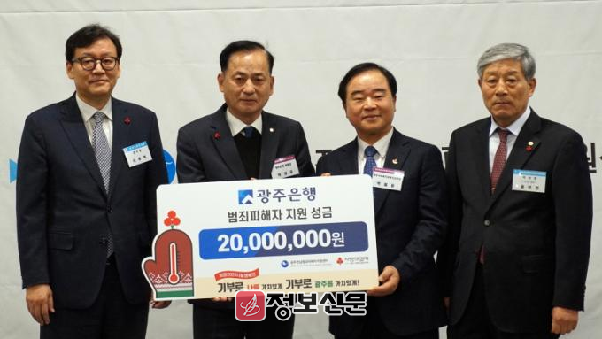 광주은행은 지난 2012년부터 현재까지 광주전남범죄피해자지원센터에 지속적으로 성금을 전달했으며, 이는 범죄 피해로 고통을 겪고 있는 피해자들의 생계비 및 의료비 지원, 심리상담 지원, 법률 지원 등으로 사용되고 있다.