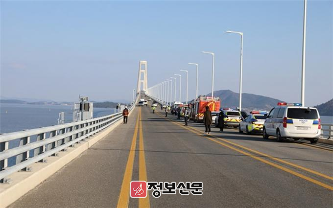 신안경찰서와 신안소방서, 신안군청이 합동으로 실시한 금번 훈련은 경찰서 상황실·교통·파출소 등 경력 30명과 교통조사 차량, 순찰차 9대, 싸이카 1대 등, 소방서 경력 40명, 구급차 등 구조차량 5대, 신안군청 제설차량 1대를 투입하여
