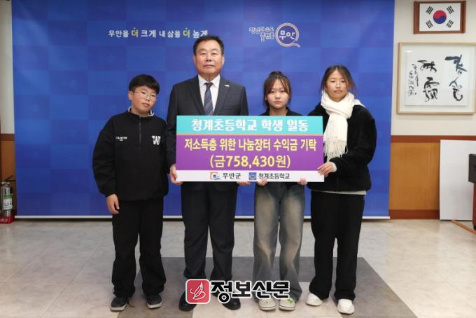 ![]() 무안군 청계초등학교 학생 일동, 나눔장터 수익금 전액 기탁 |