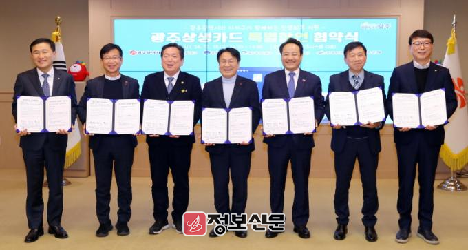 광주광역시(시장 강기정)는 18일 시청 비즈니스룸에서 5개 자치구, 광주은행과 함께 ‘광주상생카드 특별할인 공동추진 업무협약’을 체결했다.