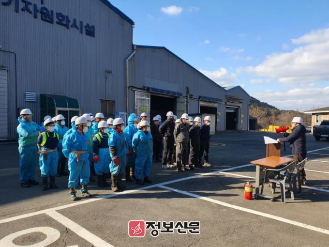 이번 훈련은 화재 예방을 위한 자체 훈련으로, 재활용선별장 스티로폼 처리시설에서 화재가 발생한 상황을 가정해 진행했다. 자위소방대원의 역할과 행동 요령을 명확히 인식시킴으로써 화재 상황에서의 초기대응 역량을 키워 인명 및 시설물 피해를 최소화하는 데 훈련의 목적을 뒀다.